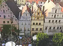 La place du marché et l’ancien hôtel de ville se trouvent entre la porte haute et la porte basse. L’ancien hôtel de ville sépare l’Oberer Markt et ses maisons à pignons de la seconde moitié du XVIe siècle, de l’Unterer Markt, où se tiennent les quatre grandes foires annuelles, vivaces depuis 1396, ainsi que les marchés hebdomadaires du mercredi et du samedi. Plusieurs maisons présentent une ornementation de style Renaissance.