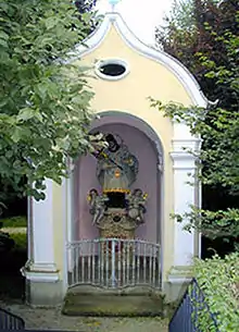 Un oratoire avait été construit à cet endroit en 1486. Détruite par les intempéries et les guerres, cette chapelle a été reconstruite en 1692 et consacrée à comme église à Saint-Sébastien en 1697. Le chœur ouest abrite la stèle funéraire, de style Renaissance, des filles jumelles du comte palatin Frédéric de Parkstein, décédées à Weiden en 1590. Outre la magnifique grille en fer forgé sous les tribunes, on peut y admirer une reproduction de la statue de la chapelle Sainte-Staude consacrée en 1792 à la Sainte Vierge.