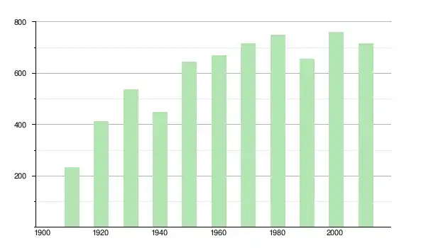 | 1930 | 537 | ▲ +30,34 % | |
