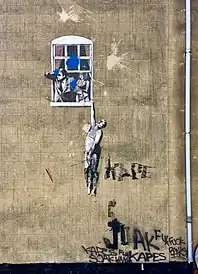 Peinte en 2006 sur le côté de ce qui était alors une clinique de santé sexuelle, la Brook Sexual Health Clinic, il s'agit de la première œuvre d'art de rue légale au Royaume-Uni. À la suite d'un sondage mené par le Conseil municipal de Bristol auprès de sa population, une autorisation en rétrospective et une protection ont été accordées à l'œuvre. Celle-ci représente un homme nu suspendu à une fenêtre, tandis qu'un homme en costume regarde dehors, à côté d'une femme en sous-vêtements.