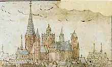 Wenceslas Hollar: Cathédrale Saint-Martin de Mayence; dessin à la plume de 1632.