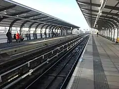 La plateforme dispose de deux quais latéraux encadrant les deux voies, numérotées 1 et 2, de la ligne[2].