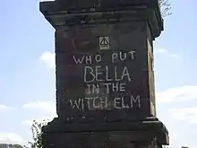 En 1944, un graffiti, lié au mystère, est apparu sur un mur dans Upper Dean Street, à Birmingham, disant « Who put Bella in the Wych Elm - Hagley Wood » (en français : « Qui a mis Bella dans l'orme du bois de Hagley »)[5], amenant les enquêteurs à envisager plusieurs nouvelles pistes pour retrouver l'identité de la victime. D'autres messages de la même main apparurent également ailleurs. Depuis au moins les années 1970, des graffitis similaires apparurent sporadiquement sur l'obélisque de Hagley, près de l'endroit où le corps de la femme avait été découvert. Du fait de l'homophonie anglaise entre Wych (orme) et Witch (sorcière), le graffiti se transforma en « Who put Bella in the Witch Elm ? » (en français : « Qui a mis Bella dans l'orme de la sorcière ? »)[2],[3].