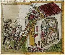 Miniature de sainte Vilborade dans le Codex 586 de la bibliothèque de l'abbaye de Saint-Gall | |