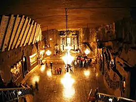 A une centaine de mètres de profondeur se trouve la plus belle salle de la mine : la chapelle de la bienheureuse Kinga de Pologne (Cunégonde), entièrement de sel, qu'il s'agisse du sol, des reliefs, des statues, des sculptures ou même des lustres. De nombreuses scènes bibliques sont représentées (la fuite en Égypte, le miracle de Cana, la naissance du Christ, l'ordre d'Hérode, le massacre des Innocents, le Christ enseignant dans le temple, saint Thomas l'incrédule, la Cène, le Christ crucifié), on y trouve également une crèche de Noël avec tous ses personnages.
