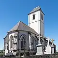 | Détails | Représente saint Gendulphe (ou « Gandou » localement) dont la statue costumée en chevalier de la Renaissance, qui faisait l’objet par le passé d’une dévotion particulière, décore toujours l'église locale. Le statut officiel du blason reste à déterminer. |