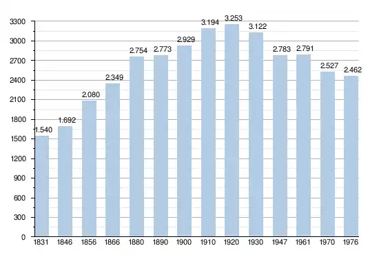 - Sources : INS, Rem. : 1831 jusqu'en 1970 = recensements, 1976 = nombre d'habitants au 31 décembre.[2]