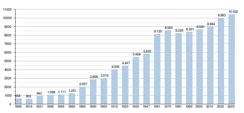 - Source : DGS - Remarque: 1806 jusqu'à 1981=recensement; depuis 1990=nombre d'habitants chaque 1er janvier[3]