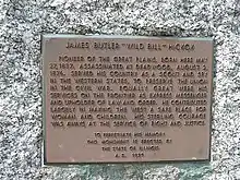 Wild Bill Hickok Memorial est composé d'un monument en granite, d'un buste en bronze et d'une plaque commémorant les services d'éclaireur et d'espion rendus par James Butler « Wild Bill » Hickok pendant la guerre de Sécession, son rôle de courrier au Pony Express, ainsi que son combat pour le droit et la justice.
