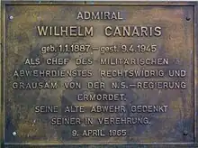 Wilhelm Canaris, né le à Dortmund dans l'Empire allemand, mort le au camp de Flossenbürg dans le Troisième Reich, est un amiral allemand, responsable de l'Abwehr, le service de renseignement de l'armée allemande, de à . Il s'est clandestinement opposé aux menées nazies, et notamment à celles de Reinhard Heydrich[1], alors qu'il était en poste.