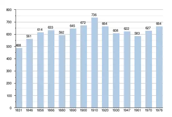 - Sources : INS, Rem. : 1831 jusqu'en 1970 = recensements, 1976 = nombre d'habitants au 31 décembre.