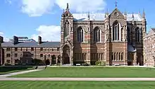 À Oxford, Butterfield conçoit le Keble College, dans un style radicalement différent des traditions d'architecture gothique existantes de l'université, ses murs audacieusement rayés de différentes couleurs de briques. Destiné aux étudiants cléricaux, il est en grande partie construit en 1868-1870, à une échelle assez domestique, avec une chapelle plus monumentale de 1873-1876. Dans ses bâtiments de 1868-1872 à Rugby School, la polychromie est encore plus impétueuse[2].