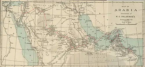 - W. G. Palgrave, Personal Narrative of a Year's Journey through Central and Eastern Arabia (1862-1863), vol. I et II, Macmillan & Co., Londres, 1865-18.