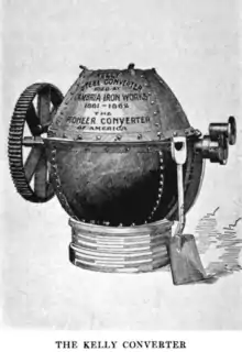 - Ces expériences n'ont pas toujours semblé bien concluantes : un jour, en 1857, sous les yeux de près de 200 employés, il envoie brutalement une énorme quantité d'air au travers de la fonte liquide, soufflant le contenu du convertisseur hors du four. Mais Kelly, convaincu de l'efficacité du principe, ramasse soigneusement les morceaux de métal projetés et les envoie à la forge, tablant sur le fait que ceux-ci ont été suffisamment décarburés[2].
