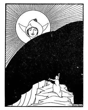 - 1910 : The Way of the Soul : a legend in line and verse[28] avec 48 dessins. Le texte est analysé et commenté[29] par Amy Audrey Locke dans l'Occulte Revue de .