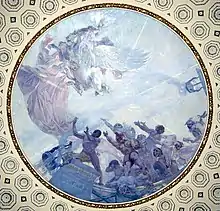 - Peintures murales au plafond de scènes de bataille, salle de réception du gouverneur, Capitole de l'État de New York, Albany, New York.