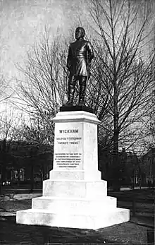 Wickham est inhumé dans le cimetière d'Hickory Hill près d'Ashland, en Virginie[8]. Une statue de Williams Carter Wickham est donné à la ville de Richmond par les camarades du général et les employés de la Chesapeake and Ohio Railway en 1891, et est placée dans le parc Monroe. Le , la statue est abattue lors des manifestations suivant la mort de George Floyd[9].