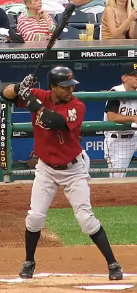 Willy Taveras avec les Rockies du Colorado durant la Série mondiale 2007. | ||