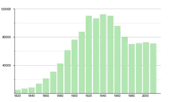 | 1950 | 110 356 | ▼ −1,91 % | |