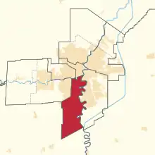 - Une partie de la cité de Winnipeg, bordée par les rivières Assiniboine et Rouge