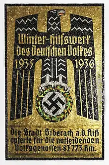 La Winterhilfswerk des Deutschen Volkes (« Secours d'hiver du peuple allemand » en français), communément connu sous sa forme abrégée Winterhilfswerk (WHW), était une campagne annuelle du Parti nazi pour aider à financer des activités de bienfaisance. Son slogan était « Nul affamé ni congelé ». Cette campagne a été initialement mise en place sous le gouvernement de Heinrich Brüning en 1931, bien que Hitler allait plus tard la revendiquer[1]. Elle a existé de 1933 à 1945, d'octobre à mars. Elle visait à fournir de la nourriture, des vêtements, du charbon et d'autres articles à des Allemands moins fortunés pendant les mois les plus rigoureux.