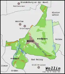 Wollin est une commune allemande de l'arrondissement de Potsdam-Mittelmark, Land de Brandebourg.
