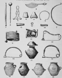 Objets de la culture protovillanovienne : bracelets, épingles, rasoirs, fibules, urnes...