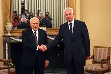 Le président du Parlement grec est Vyron Polydoras élu le , avec 179 votes « pour », 112 votes blancs et 2 votes nuls[17].