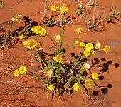 - 'Nullarbor Flame' est une sélection introduite en culture en 1997 qui produit d'abondantes fleurs rouges avec des disques jaunes et un diamètre de 4,5 cm. La plante atteint 50 à 70 cm de hauteur et 50 à 80 cm de largeur[62]