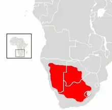 Cette espèce est présente en Namibie, au Botswana, en Afrique du Sud et au Lesotho[3].