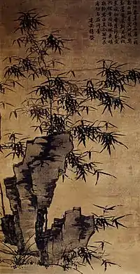 - Cette œuvre est peinte en 1441 pour un ami de l'artiste, Zhou Zhihong, grand amateur de bambous, avec la rigueur de l'écriture régulière. Cette exigence n'entrave en rien le mouvement rythmé de l'ensemble