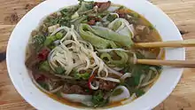 La majorité des plats sont pimentés et les bols de nouilles de riz (米粉) sont les plats les plus courants. Les nouilles de haricot mungo sont une spécialité locale, typiques de la cuisine dong de la région.