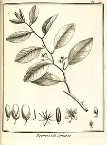 En 1775, le botaniste Aublet propose la diagnose suivante pour Heymassoli inermis (synonyme de Ximenia americana)[23] :