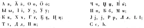 - (en) Library of Congress et American Library Association, « Non-Slavic Languages (in Cyrillic Script) », sur ALA-LC Romanization Tables,