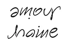 Le premier tome de la série fait également appel à des figures graphiques telles que les ambigrammes dont la représentation suscite une double lecture, interrogeant ainsi par l'image les thèmes de la série : l'ambivalence entre l'amour et la haine, le destin, le devoir[11]…