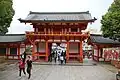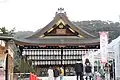 - Le rōmon : portes à doubles battants de couleur vermillon encadrées par un mur blanc. Il fut construit au XIIIe siècle dans le style de l'époque de Muromachi (1338-1573). De chaque côté sont placées des statues des gardiens shintoïstes niô qui protègent le sanctuaire des esprits maléfiques. Juste derrière la porte se trouve la statue d'un lion coréen (koma-inu) protégeant les marches qui mènent à la partie principale du temple.