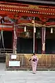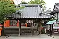 - Le haiden : le bâtiment consacré aux offrandes est à la gauche du centre du sanctuaire. La partie d'en face, avec son chōzuya, bassin d'eau servant à la purification, est consacrée aux cérémonies religieuses.