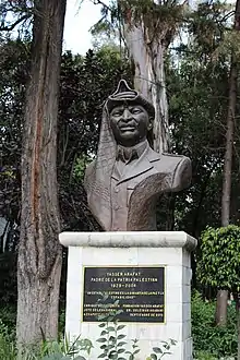 Yasser Arafat (en arabe : ياسر عرفات), né le au Caire en Égypte et mort le à Clamart (Hauts-de-Seine, France), de son vrai nom Mohamed Abdel Raouf Arafat al-Qoudwa al-Husseini (en arabe : محمد عبد الرؤوف عرفات القدوة الحسيني) et connu aussi sous son surnom (kounya) d'Abou Ammar, est un activiste et homme d'État palestinien.