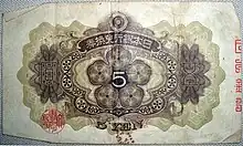 Véritable monnaie d'invasion à partir de 1937, il est déclaré sans valeur après août 1945 unilatéralement par le Japon.