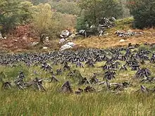 Les tourbières du Yeun Elez, situées au fond d'une cuvette granitique entourée par les hauteurs de l'Arrée forment un marais spongieux d'environ 1500 hectares où les eaux abondantes liées aux abondantes précipitations et collectées par le bassin supérieur de l'Ellez stagnent en raison de la faible pente. La tourbière est dite vivante tant que l'humidité est suffisante pour que la tourbe se forme à partir des sphaignes dont la sphaigne de la Pylaie, des chaméphytes qui s'y développent. L'empilement successif de ces végétaux en décomposition provoque un exhaussement naturel de la tourbière qui devient progressivement morte : la bruyère callune est la principale plante qui s'y développe alors formant une prairie maigre et pauvre, modifiée par l'intervention de l'homme et des animaux[28]. Par le drainage (création de profonds fossés pour accélérer le processus naturel d'évolution de la tourbière et gagner des terres agricoles exploitables), par les incendies périodiques (souvent provoqués par l'homme et qui ravagent surtout la périphérie du marais, car ils sont naturellement arrêtés par l'humidité dans la partie centrale), par l'exploitation de la tourbe et enfin en raison de l'ennoiement à partir de 1936 d'une partie du marais sous les eaux du réservoir de Saint-Michel (un tiers des tourbières est ennoyé), l'homme a considérablement modifié le milieu naturel, surtout au cours du XXe siècle.