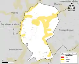 Le retrait-gonflement des sols argileux est susceptible d'engendrer des dommages importants aux bâtiments en cas d’alternance de périodes de sécheresse et de pluie. 23,5 % de la superficie communale est en aléa moyen ou fort (52,8 % au niveau départemental et 48,5 % au niveau national). Sur les 266 bâtiments dénombrés sur la commune en 2019, 188 sont en aléa moyen ou fort, soit 71 %, à comparer aux 70 % au niveau départemental et 54 % au niveau national. Une cartographie de l'exposition du territoire national au retrait gonflement des sols argileux est disponible sur le site du BRGM[21],[Carte 2].