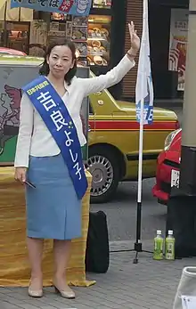 Yoshiko Kira en campagne électorale à Shinjuku, en janvier 2013. | |