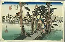 Durant la période Edo, une longue colonnade de pins longeait la route à cet endroit. C'est ce que montre l'estampe ukiyoe classique d'Ando Hiroshige (édition Hoeido) de 1831-1834 où l'on voit un serviteur menant des voyageuses sur un cheval sur un étroit passage aligné de pins avec le mont Fuji à gauche.