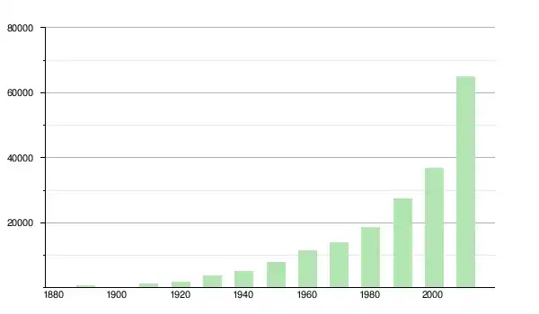 | 1930 | 3 605 | ▲ +111,07 % | |