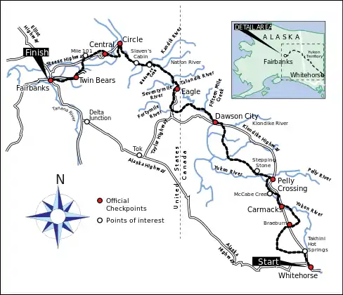 Le tracé de la course varie légèrement d'année en année pour diverses raisons, dont les chutes de neige et le gel sur le Yukon. Sa longueur varie également : l'édition 2003, abrégée à cause du temps, parcourait 1 482 km[5], tandis que celle de 1998 s'étendait sur 1 646 km[6]. La course se dispute dans le sens Fairbanks-Whitehorse les années impaires et dans le sens contraire les années paires[7].