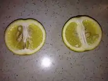 En apparence, le fruit ressemble au yuzu (C. junos) et au kabosu (C. sphaerocarpa). Lorsqu'il mûrit, l'écorce extérieure et la chair prennent une couleur jaune vif qui rappelle le citron. Le yuko a de nombreux pépins, une saveur prononcée mais « ronde », et une chair juteuse ; son écorce interne blanche (albedo) est également comestible, comme celle de l'hyuganatsu (C. tamurana). L'écorce du fruit mûr a une odeur sucrée semblable à celle d'autres fruits comme le pomelo et le yuzu[2]. Le poids du fruit est d'environ 150 g. L'épaisseur de la peau est de 5,5 à 6,9 mm. Mûr en décembre, le jus de fruit contient 3,2 à 3,9 % d'acide citrique[3].