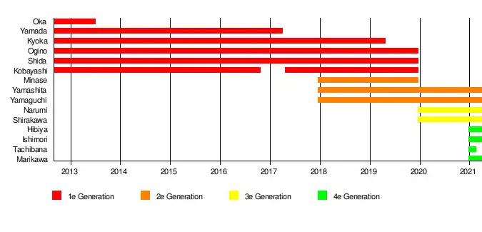 | Hanon Yamaguchi (山口はのん) | 24 ans | Préfecture de Hyōgo | Violet[alpha 2] | 2e (2017) | 27 décembre 2021 | |