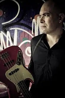 Yves Carbonne et sa Fender Jazz Fiesta Red pour gaucher de 1963 - 2005 : Carbonne-Di Piazza-Manring