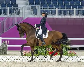 Pendant la saison des concours d'hiver, elle participe aux concours de dressage tenus à Wellington, en Floride[3]. Au printemps et en été, elle participe régulièrement au circuit européen.