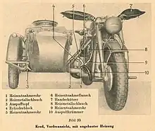 Le moteur est un bicylindre à plat de 751 cm3 (alésage 75 mm, course 85 mm), avec chambres de combustion hémisphériques et un taux de compression de 1:6,2. Les cylindres sont relevés de 5° (c'est donc en fait un moteur en V à 170°) pour obtenir une garde au sol accrue sous les cylindres. Le moteur n'a pas été conçu pour développer une puissance élevée avec 26 ch à 4 000 tr/min. Le couple maximal de 52 N m est atteint à 2 650 tr/min. La culasse en aluminium est fortement ailetée (elle possède une grande surface), de sorte que le refroidissement est suffisant, même à basse vitesse. Les trois paliers de vilebrequin sont sur roulements pour avoir une durée de vie plus longue avec une résistance au frottement diminuée. L'arbre à cames et la pompe à huile à piston entraînés par des engrenages reçoivent le mouvement du vilebrequin. L'embrayage est de type double disque à sec. Le carburateur est un Solex BFR de 30 mm de diamètre, l'allumage fait appel à une magnéto, soit Noris ZG 2, soit Bosch FJ 2R 134.